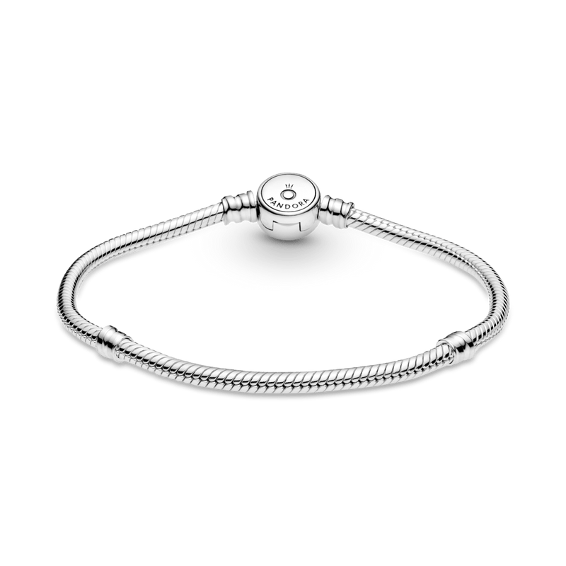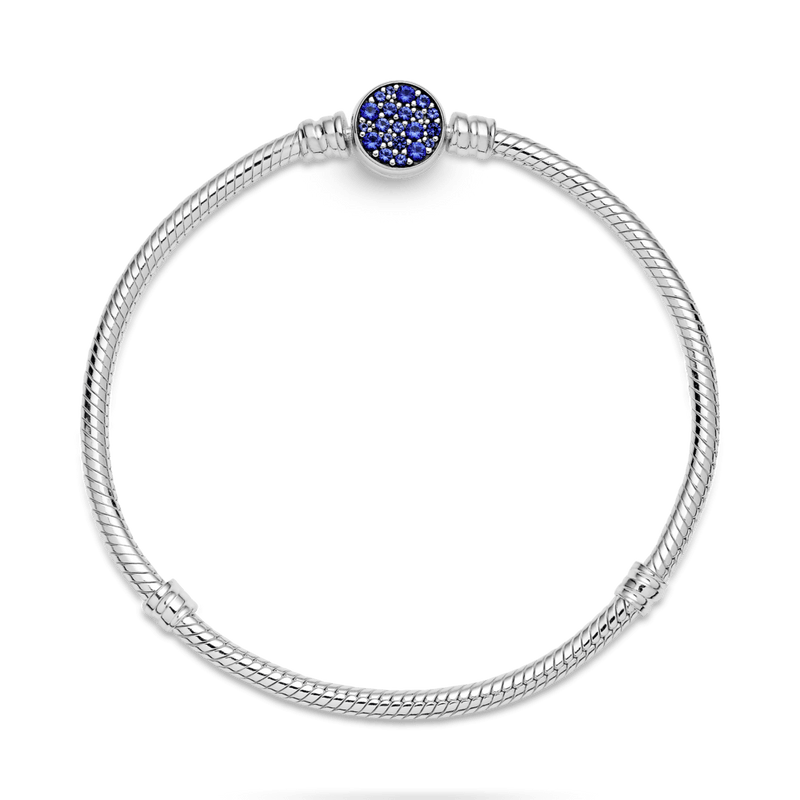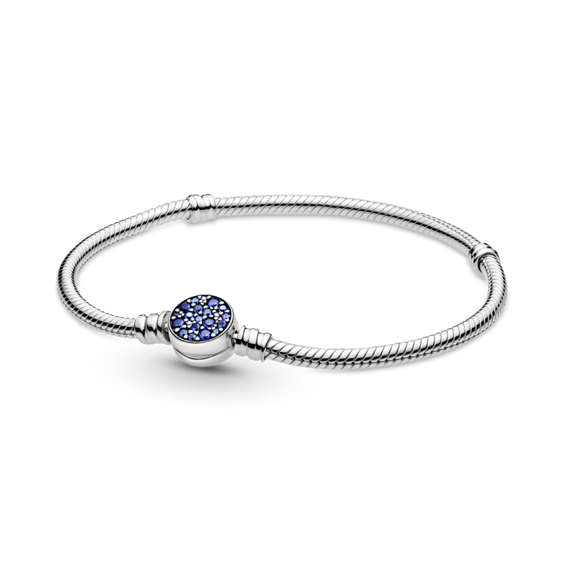 Brazalete Cadena de Serpiente Pandora Moments con Broche de Disco Azul Resplandeciente