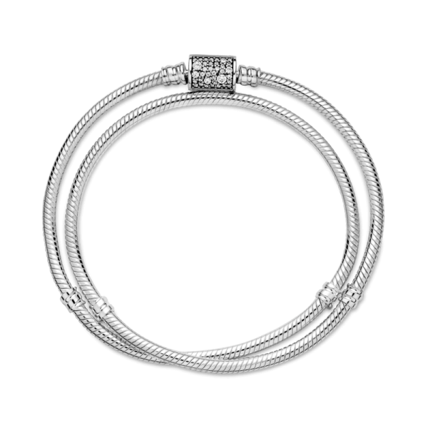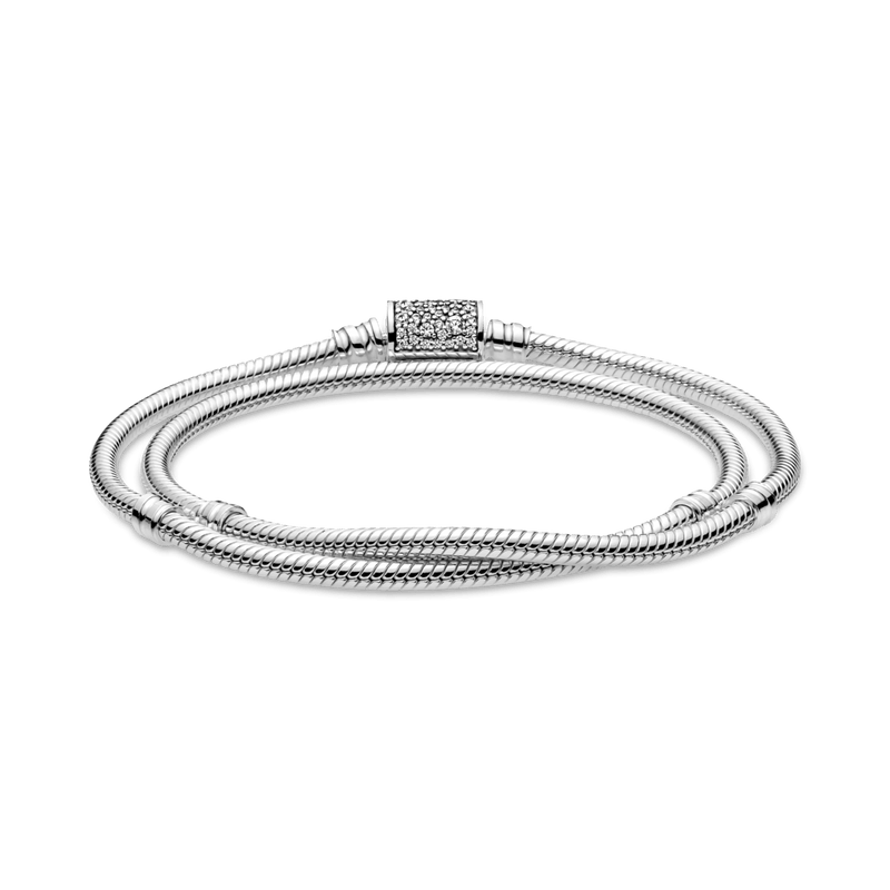 PANDORA – Brazalete Doble Cadena de Serpiente con Broche de Barril Pandora Moments