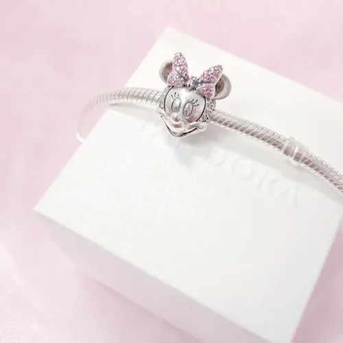 Pulsera Pandora Moments Minnie Mouse Moño Rosa De Disney en Plata S925 Original