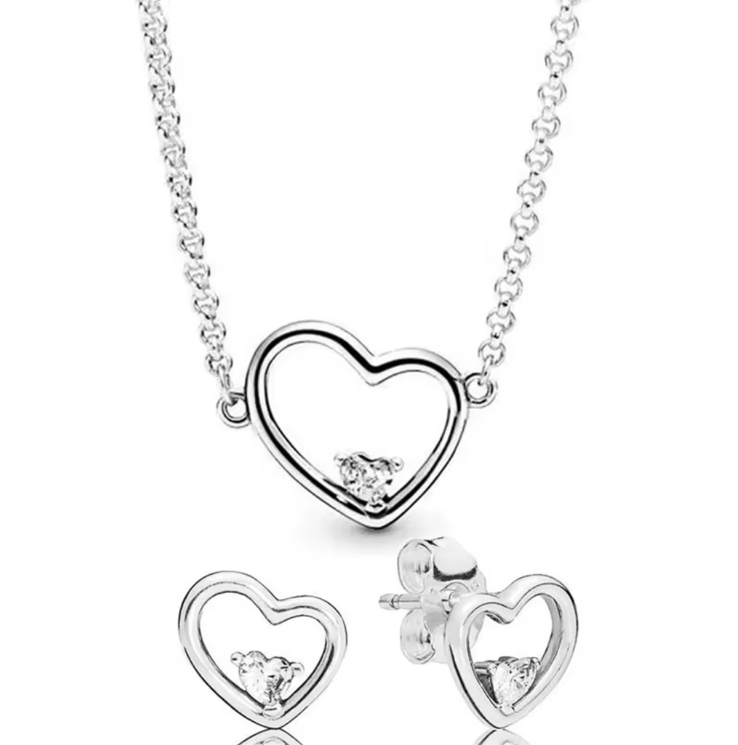InicioCollares Pandora Set De Collar Y Aretes Pandora Corazón Doble Diamante En Plata S925