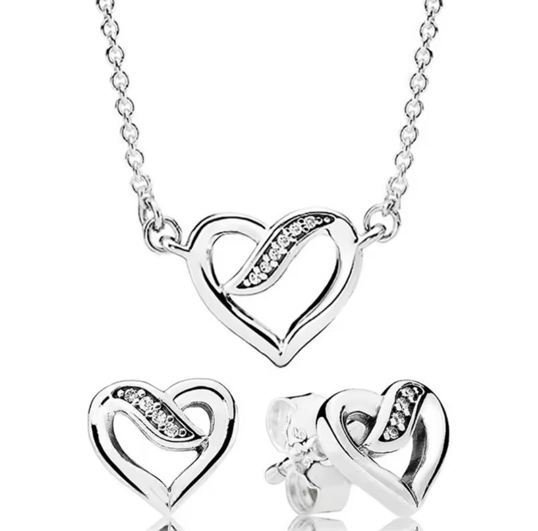 InicioCollares Pandora Set De Collar Y Aretes Pandora Corazón Enlazado En Plata S925