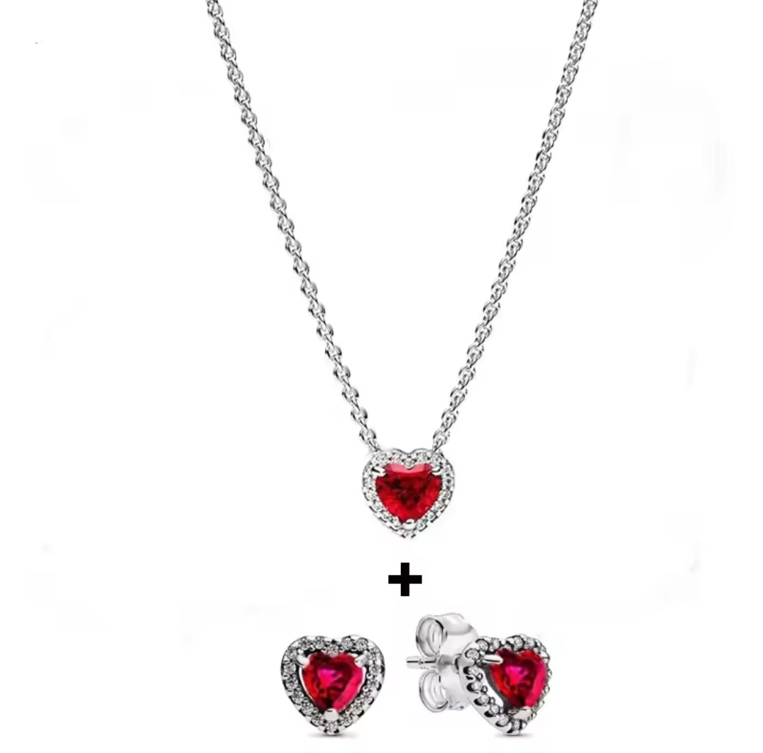 InicioCollares Pandora Set De Collar Y Aretes Pandora Corazón Ruby En Plata S925
