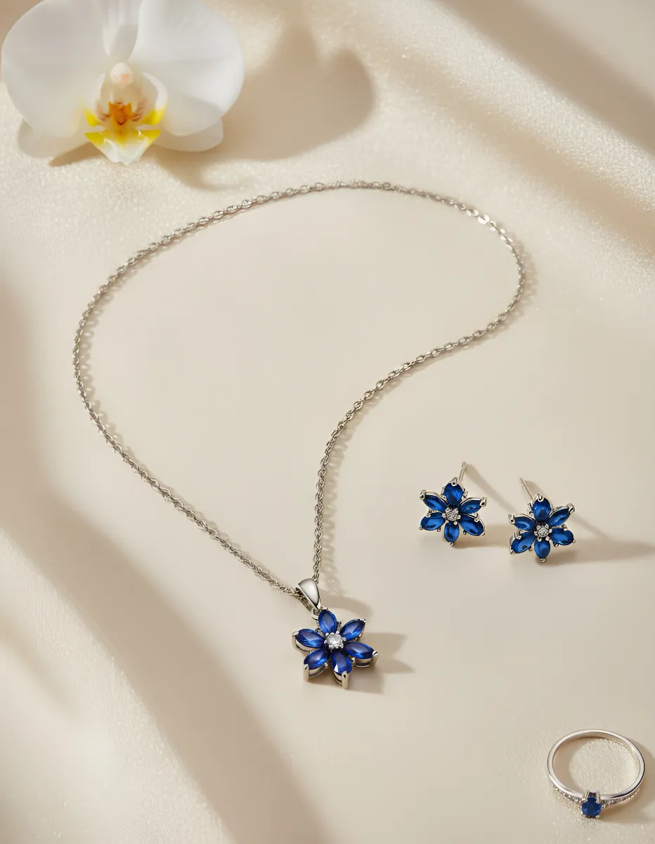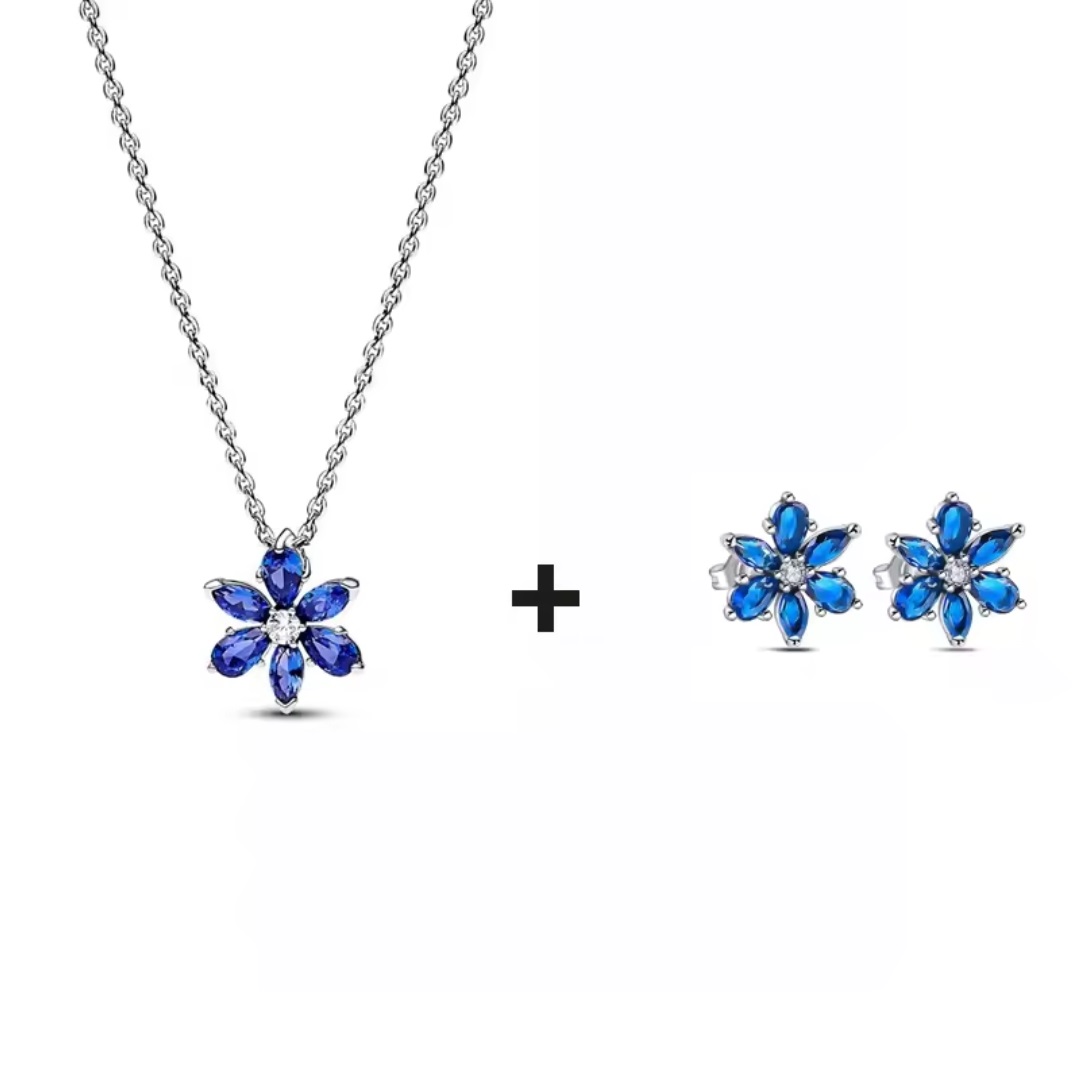 InicioCollares Pandora Set De Collar Y Aretes Pandora Flor Azul Brillante En Plata S925