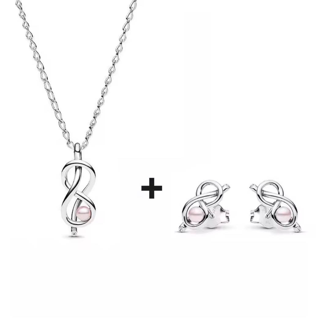 Set De Collar Y Aretes Pandora Infinito Perla En Plata S925